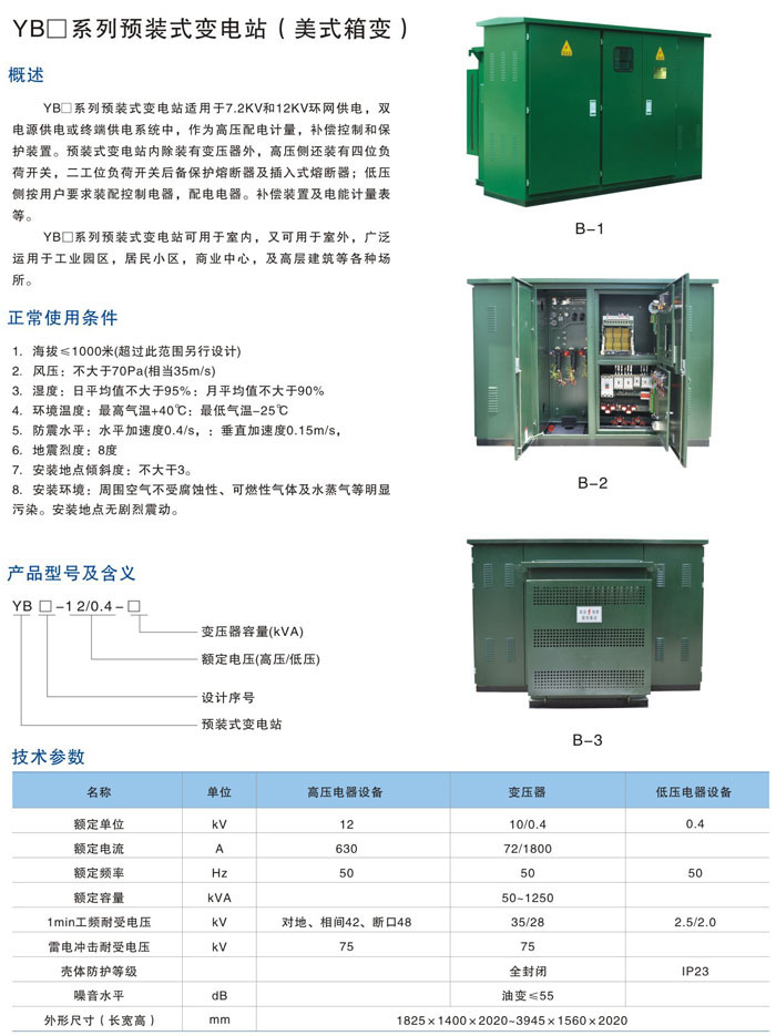 YB1美式箱变 路灯箱变 隧道箱变