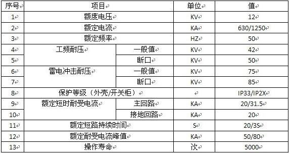 HTW16-12开闭所技术参数:
